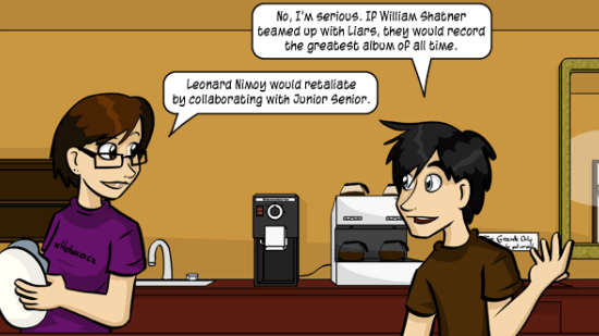 I can't quite remember how I got into it, but in high school I was a big webcomics guy, mostly pixel stuff. But the one I loved the most at the time, and felt permeate deep into my identity in a way that 8-Bit Theater and the rest never could, was Questionable Content—a still-running series about a self-insert-shaped character working at a coffee shop in New England and palling around with his coworkers, most of whom were women, all of whom had high levels of snark and indie rock erudition.